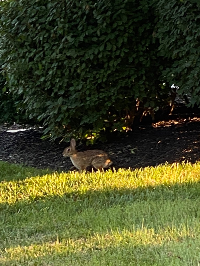 As a gray rabbit scurries across the road